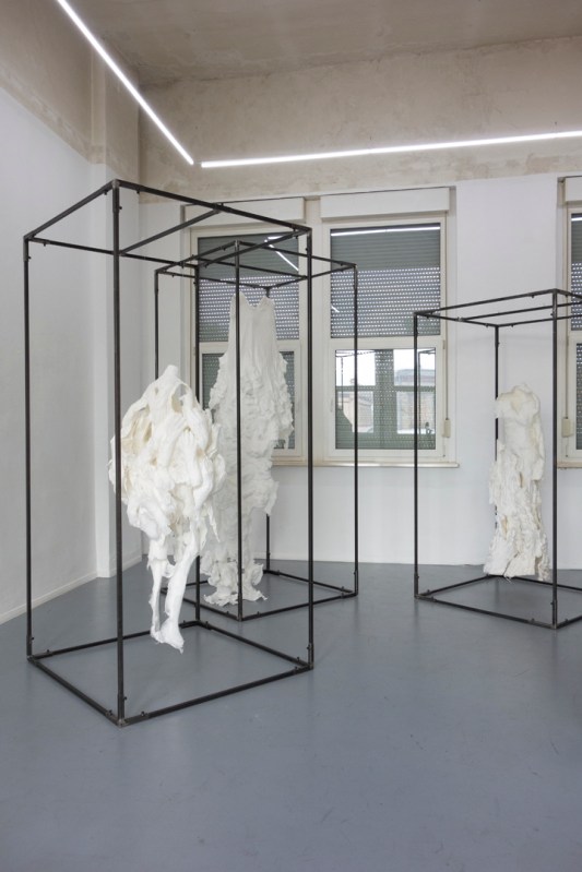 fragile III, Viskose, Leim, Stahl, 250 x 120 x 120 cm, 2019-2023