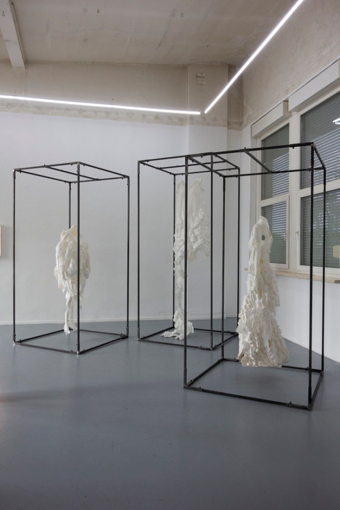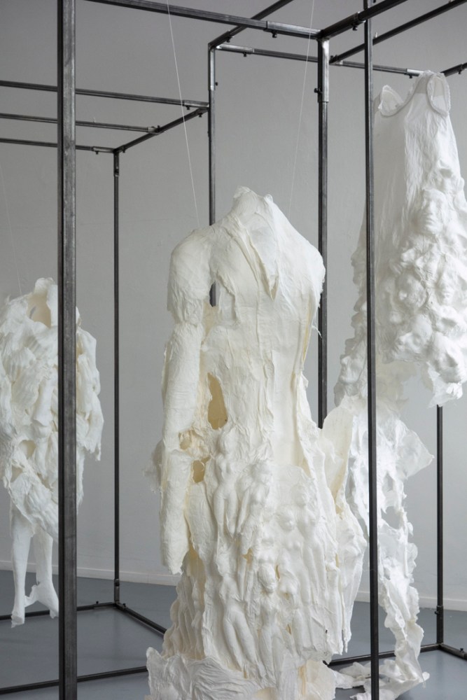 Die Hüllen fragile I-III setzen sich aus Abformungen verschiedener Gegenstände oder Körperteile zusammen. Der Prozess der Entstehung ist dabei kein gradliniger, sondern ein langjähriger Vorgang aus Collage und Decollage.