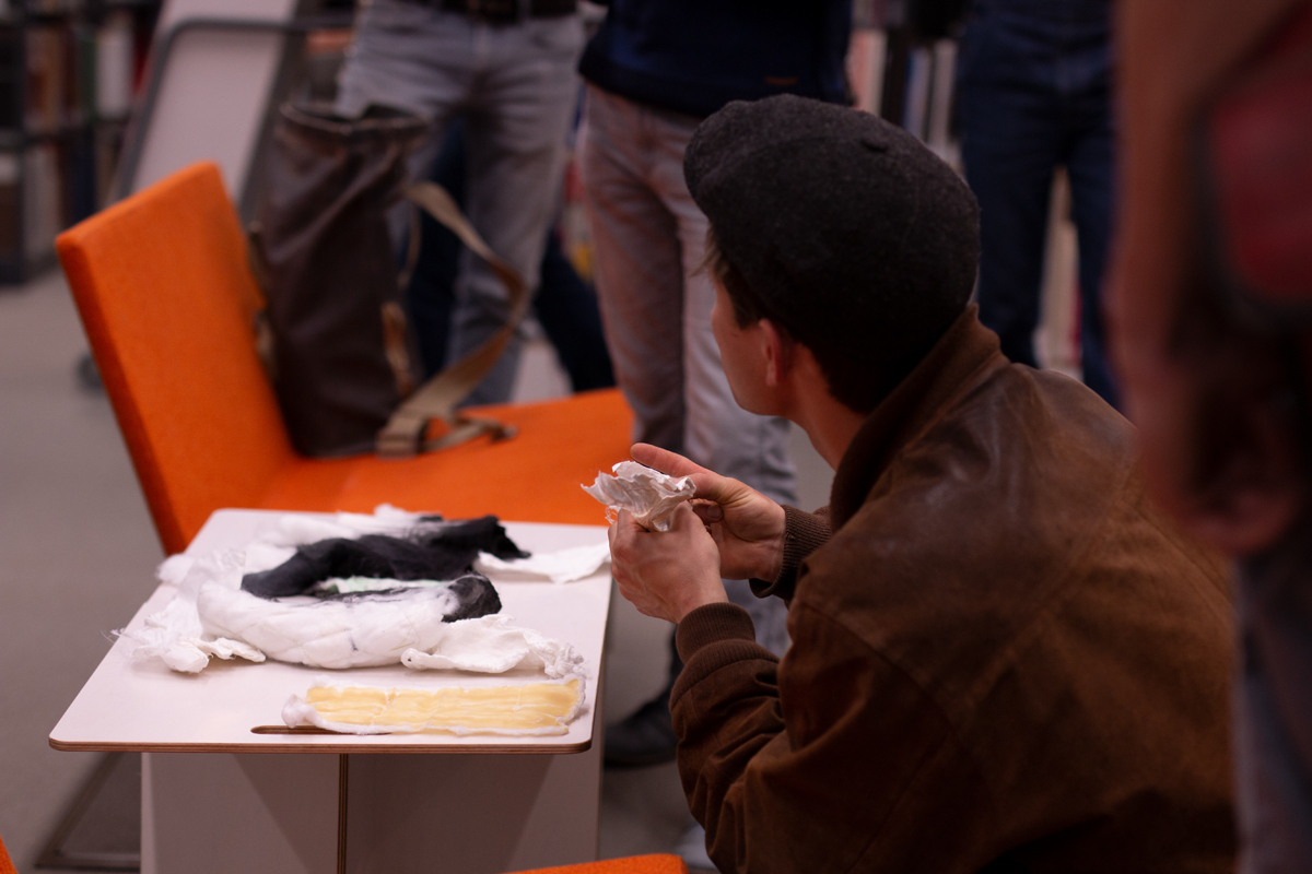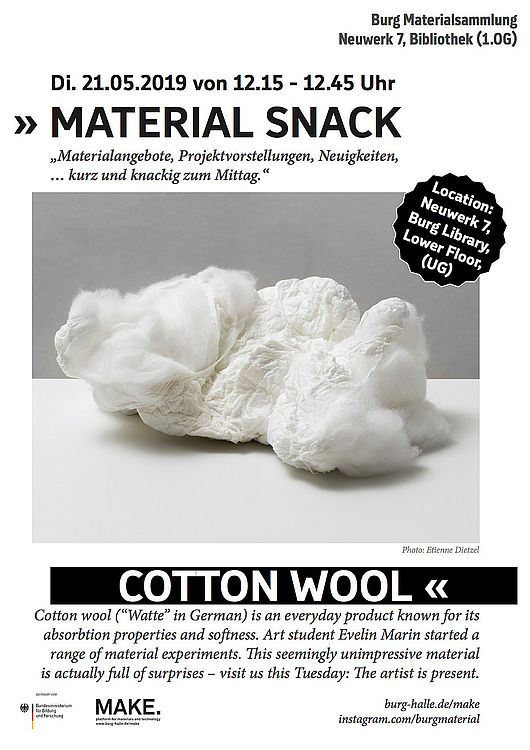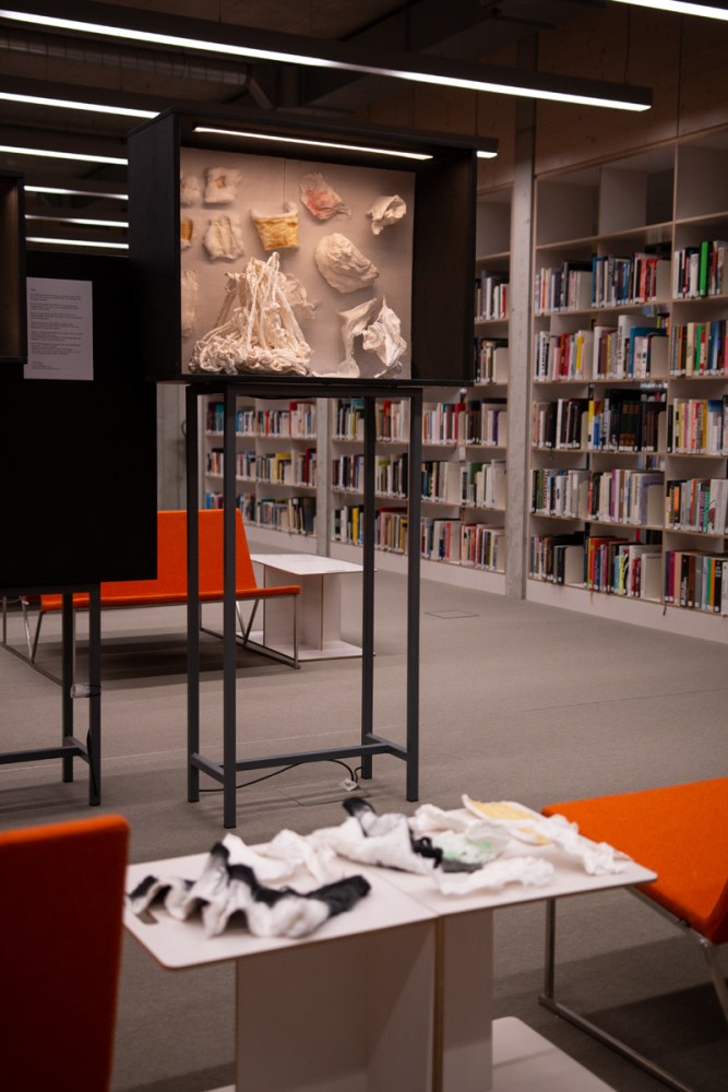 Ausstellung MATERIALSNACK COTTONWOOL in der Bibliothek der Kunsthochschule Burg Giebichenstein Halle (Saale)