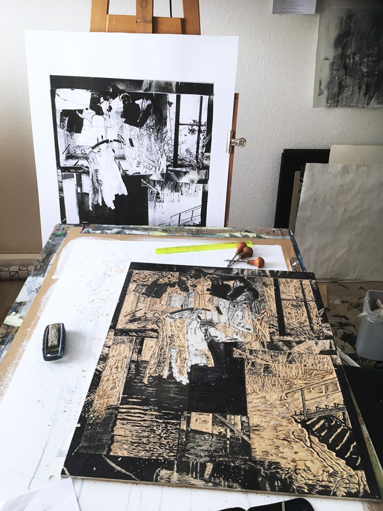 ganz rechts: Fotoinstallation Atelier Hamburg Juni 2020
